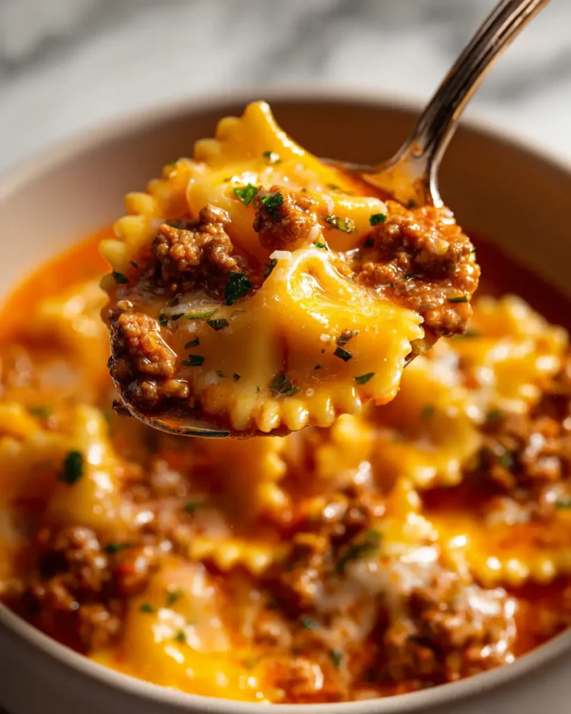 Each serving delivers true lasagna vibes, rich beef, robust tomato flavor, fragrant herbs, and ribbons of melty cheese in every spoonful.